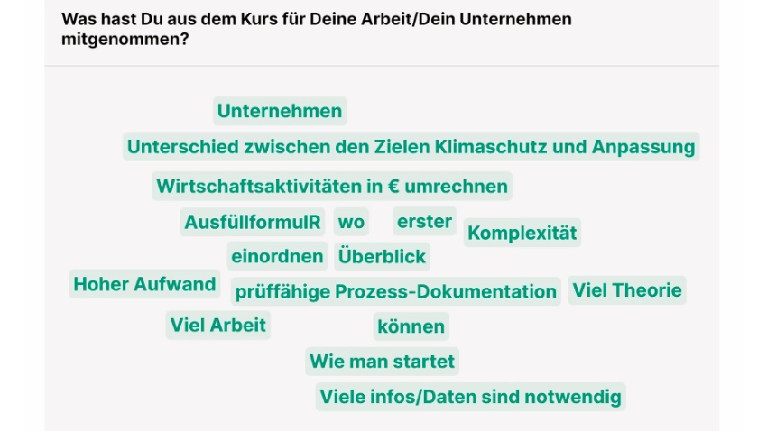 Am 22. Februar ging es weiter, dieses Mal mit dem eLearning-Workshop EU-Taxonomie. Die inhaltliche Expertise kam von Jakob Haltmeyer (KPMG), in Vertretung von Marina Luggauer (KPMG), der Vortragenden der eLearning-Kurse. Ganz ähnlich wie Ende Jänner wurde auch in diesem Workshop eine große Bandbreite an Fragen behandelt und diskutiert: Wo sind Schnittstellen zwischen EU-Taxonomie & CSRD? Wie komme ich von den Wirtschaftstätigkeiten zu den KPIs? Worum geht es bei den Minimum Safeguards? Und wo starte ich, wenn ich erst am Anfang stehe?