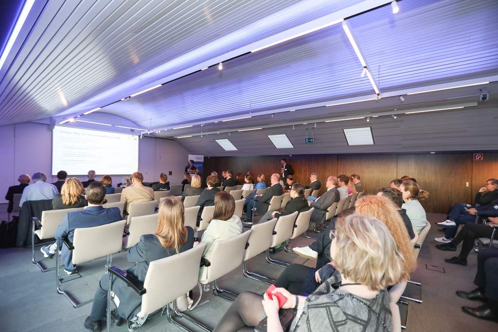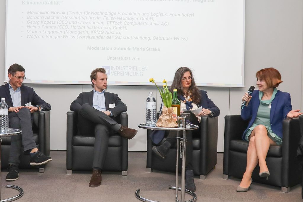 Im Anschluss fand eine hochkarätig besetzte Podiumsdiskussion statt, die sich mit den Herausforderungen und Chancen auf dem Weg zur Klimaneutralität beschäftigte. Diskutiert wurde unter anderem, wie Unternehmen innovative Wege finden können, um ihre CO₂-Emissionen zu reduzieren und gleichzeitig konkurrenzfähig zu bleiben.